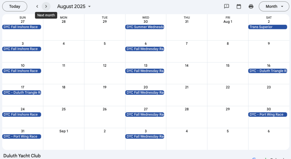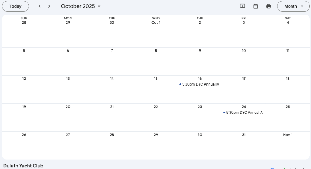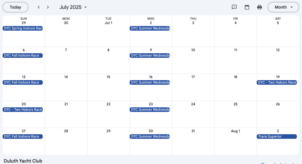 Wayzata Yacht Club Calendar